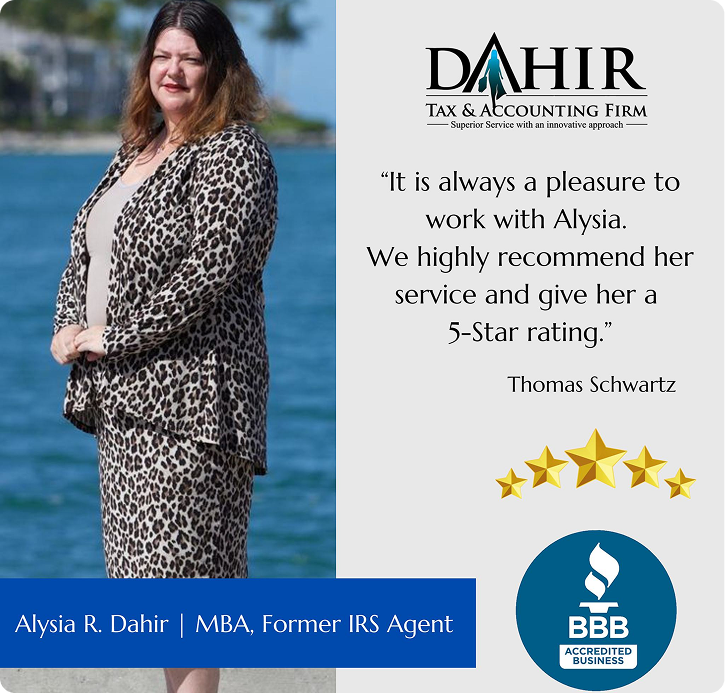 I’m very glad we found Alysia R Dahir and the Dahir Tax and Accounting Firm. We were looking for an accountant who could take us to the next level in our professional pursuits. Alysia R Dahir has the experience and knowledge to ensure that we are following the law and getting the tax benefits we are entitled to. Alysia R Dahir is part of our “team,” and we appreciate her creative thinking and the time she takes to goal-set with us.